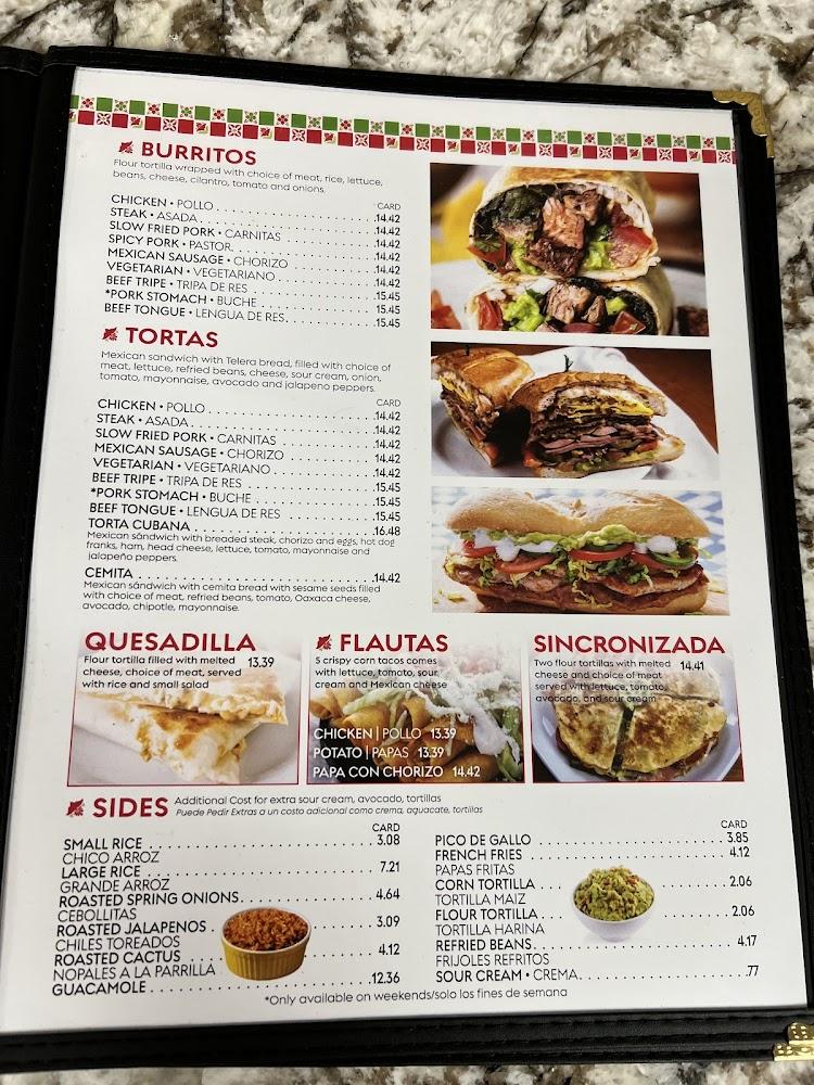 La Mexicana's menu offers a mouthwatering array of traditional Mexican dishes. Each item reflects a commitment to authenticity and quality. Start with breakfast plates, featuring delicious tortilla chips topped with eggs or steak, perfect for any time of day. Snacks like Fritos Locos and Esquites add fun to the menu, catering to diverse tastes.